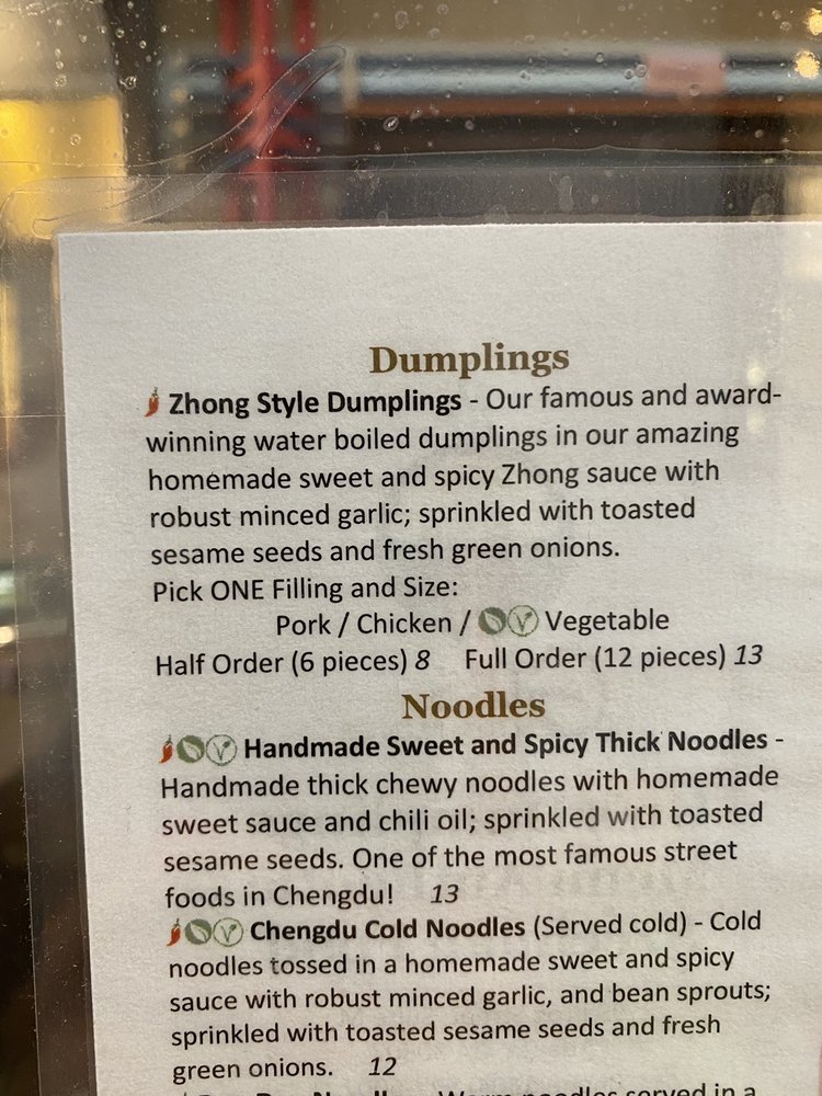 - Dumplings: Their famous Zhong Style Dumplings come in both pork and vegetable varieties, generously drizzled with a homemade sweet and spicy sauce that will transport you straight to the streets of Szechuan.